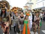 Antes de llegar a su trono ubicado en el patio del Mercado Central de Abastos, el Cartero Real recorrió varias calles de la localidad en pasacalles lanzando caramelos y juguetes. Este año no lo hizo solo, le acompañaban el medio centenar de actores de la compañía de teatro "Padre Santiago Gassín"  que ponen en escena el musical de "El Rey León" con gran éxito de público allá por donde van. Estos chavales hacen las delicias de menores y mayores cada vez que actúan por eso, en la tarde de ayer, era un buen reclamo para los niños.