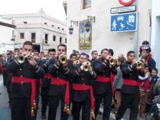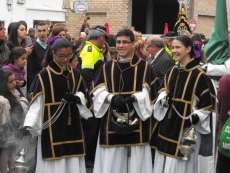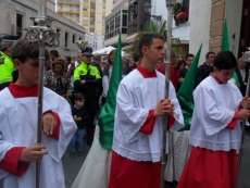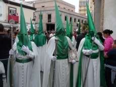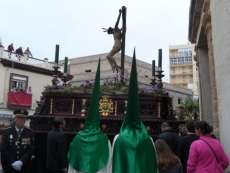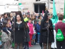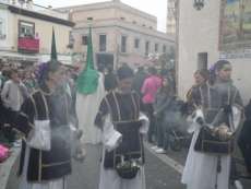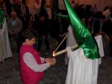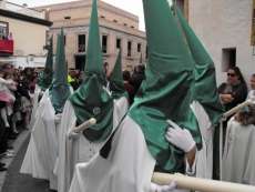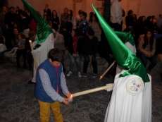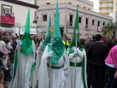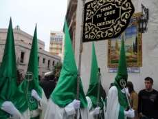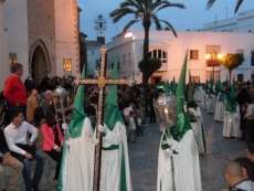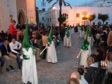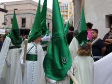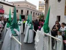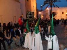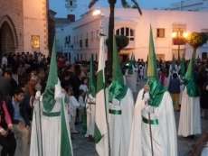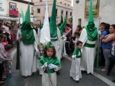 A las siete y cuarto de la tarde partía de la capilla de San Roque la cruz de guía que abría paso a un cortejo formado por unos 130 hermanos nazarenos con túnica blanca, capa blanca y antifaz verde, para recorrer las calles de la villa. Comenzaba la recta final de unos días de conmemoración de la pasión, muerte y resurrección de Jesús coincidiendo con la jornada festiva que siempre invita a salir a la calle a un mayor número de ciudadanos.