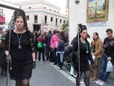 El de 2014 ha sido por fin un Viernes Santo completo, algo que no ocurría desde la Semana Santa de 2010 ya que tanto en 2011, 2012 y 2013, la lluvia dejó a medias la estación de penitencia o directamente, no permitió salir de capilla. Ayer, aunque el cielo no acompañaba demasiado, se pudo realizar el recorrido completo que concluía pasadas las doce y media de la noche con una plaza de San Roque llena que despidió a su Cristo de la Veracruz y a María Santísima de las Angustias.