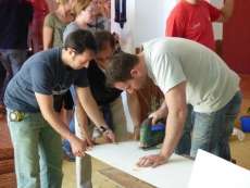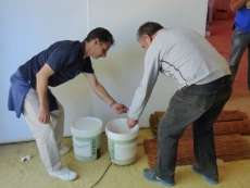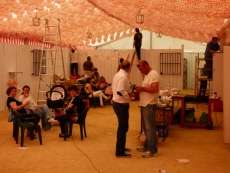 [Img #32949]El fin de semana previo a la celebración de la Feria de Primavera es de especial trabajo para aquellas peñas y asociaciones o entidades que montan su caseta en el recinto ferial. Y es que principalmente aquellas que son portátiles, tienen que decorar los desangelados módulos para dar un ambiente más acogedor durante los cuatro días de fiesta. Por eso, las jornadas del sábado y el domingo previas la feria, el real es un trasiego constante de socios que ayudan a pintar, realizar trabajos de carpintería, albañilería, fontanería, costura, etc., todo ello en función de la decoración más o menos trabajada que cada uno quiera para su caseta.