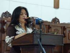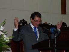 El pregonero se subía al atril del altar de la parroquia de Nuestra Señora del Carmen recibiendo antes la medalla de la Hermandad de Nuestra Señora del Rocío de manos del reverendo padre, Carlos Redondo. Estuvo presentado por la rociera María García Polo que mostró su orgullo y el honor que le suponía dar a conocer el currículo de un hombre de fe mariana, entregado a la devoción de la virgen el Rocío y con una reconocida trayectoria tanto laboral -dedicándose al mundo de la comunicación- como dentro de diferentes hermandades. María Polo reiteró su satisfacción por poder presentar a un pregonero que es ducho en esta materia ya que desde 1988 han sido muchos los pregones que ha protagonizado tanto del Rocío, de Semana Santa, ferias, del Rosario, etc. Es un ambiente en el que se desenvuelve bien y ayer, en una iglesia del Carmen quizás algo desagelada, con menos de un centenar de personas entre el público, dio muestras de su buen hacer.