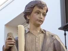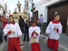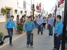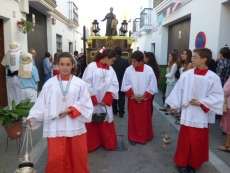 Santo Domingo Savio era portado por una cuadrilla de doce jovencísimos costaleros, alumnos del centro, a los que seguían otros tantos jóvenes que hacían los propio con San Juan Bosco que el año pasado ya presentó mejoras notables en su paso.