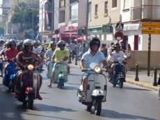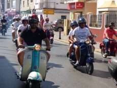 Unas 110 vespas de todos los modelos y colores han respaldado la II Vesparoth de Rota