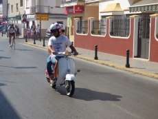 Organizado por el Club Ruta Sur, un total 110 vespas se han reunido en la jornada de hoy domingo provenientes de muchas localidades de la provincia de Sevilla y Cádiz como Trebujena, Mairena del Alcor, Lebrija, Sanlúcar, El Puerto, Jerez, Sanlúcar, San Fernando, Chiclana y Rota, entre otras. Con edades comprendidas que varían desde los 18 años a los 70, estos enamorados de la que es sin duda, una de las motos más veneradas desde los 50, tienen por delante una jornada de convivencia además de una ruta turística y gastronómica que irá desde Costa Ballena al casco urbano roteño, que prevé terminar en torno a las cinco de la tarde. Antes, pasarán por calles del complejo turístico como avenida Reina Sofía, Juan Carlos I, avenida de la Urta o parque "La Ballena", donde tomarán un refrigerio, y volverán al casco urbano de Rota donde se les podrán ver recorrer las avenidas de la Diputación, de Sevilla, San Fernando, María Auxiliadora, San Roque, Aviador Durán y llegar hasta el centro histórico. Con parada en Bartolomé Pérez, los aficionados a las vespas, sobre las dos y media de la tarde podrán acercarse para disfrutar de una amplia variedad de modelos y estilos entre los que se encuentra hasta alguno del año 1959, el más antiguo que participa en esta II Vesparoth. Tras esa parada, donde aprovecharán para visitar el Castillo de Luna y la calle "Bésame en esta esquina", continuarán el recorrido hasta el recinto ferial donde está previsto el almuerzo.
