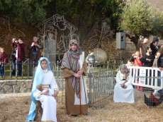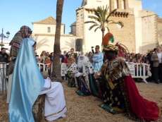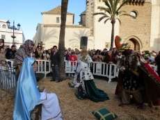 Tras los oportunos aplausos y la entrega de regalos de los Reyes, tomaban la palabra los protagonistas de la tarde. Melchor, Gaspar y Baltasar coincidieron en destacar la ilusión de este día, la larga jornada de trabajo que les quedaba por delante y sobre todo, el mensaje de paz e ilusión que reflejan con su llegada. Aconsejando un buen comportamiento para recibir los regalos y juguetes pedidos, los Reyes se dirigieron al portal de belén viviente instalado en la plaza Bartolomé Pérez con alumnos de los Salesianos, para adorar al Niño Jesús. Allí, como es tradición, ofrecieron oro, incienso y mirra y se arrodillaron durante unos minutos mientras los niños de la escolanía "El Galeón" cantaban varias piezas.