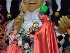 En este segundo día, dedicado a los niños, el protagonismo de la primera parte del acto se lo han llevado las ninfas que, acompañadas hasta el escenario, han sido presentadas de forma oficial. Tras ellas, la Sirena infantil Blanca Fernández, precedida de su antecesora en el cargo, Julia Cabeza de Vaca, y del brazo del delegado de Fiestas, Óscar Curtido, ha sido coronada como la representante de los pequeños en esta fiesta durante todo un año. El concejal ha querido felicitar a las pequeñas a las que ha animado a que se lo pasaran bien, y ha dado paso a la presentación de la primera pregonera del Carnaval infantil. Muy animada, vestida de payaso, ha recorrido bailando varias veces el pasillo que la ha llevado hasta el escenario desde el que a sus 15 años, ha expresado cómo se vive esta fiesta desde su punto de vista.