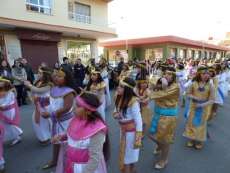 A lo largo de todo el recorrido, y gracias a que las carrozas iban musicalizadas, cada colegio representando en este cortejo, Eduardo Lobillo, Pozo Nuevo, San José de Calasanz, Pedro Antonio de Alarcón, Salesianas, Azorín y Luis Ponce de León, han podido bailar al ritmo de sus propias canciones y coreografías, lo que ha enriquecido bastante el paso del cortejo. A la parte musical se sumaban los músicos de la banda municipal "Maestro Enrique Galán", que abría el cortejo, y la batukada "Ketetumba".