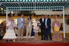 La alcaldesa de Rota, Eva Corrales, acompañada por su socio de gobierno y primer teniente de alcalde, Lorenzo Sánchez, junto con miembros del gobierno municipal entre los que se encontraban el teniente de alcalde delegado de Fiestas, Óscar Curtido, y el delegado municipal Antonio Izquierdo, entregaron las placas y premios otorgados por el jurado de este popular concurso de feria, compuesto por presidentes o representantes de las propias peñas de la feria.