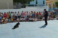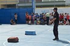 Enmarcado dentro del programa "Participación Ciudadana" de la Policía Nacional, se trata de acercar a los jóvenes la labor de los agentes nacionales de una manera muy cercana y sobre todo amena. Unos 470 alumnos del San José de Calasanz han disfrutado hoy durante algo más de hora y media, de una exhibición que suele ser muy llamativa para los menores. Y es que gracias a la participación de las Unidades de Guías Caninos de Cádiz, se muestra a los escolares cómo un perro adiestrado para ello, y que es un buen complemento para la labor de seguridad de la Policía, es capaz de detectar artefactos explosivos escondidos o sustancias estupefacientes. Sin duda, es una de las parte de esta actividad que más llama la atención de los alumnos que suelen aplaudir encantados de ver en primera persona la destreza de los perros.