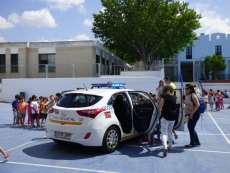 Quizás algunos vecinos de las inmediaciones del colegio San José de Calasanz se hayan alertado hoy ante tanto ruido de sirenas de coches de Policía, y es que activar esa alarma sonora de los vehículos policiales, ha sido otro de los grandes atractivos para los escolares.