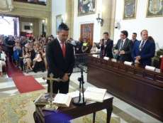 José Javier Ruiz comienza esta legislatura convencido de que tiene un gran reto por delante, pero sobre todo, con las ideas claras de llevar transparencia al Ayuntamiento de Rota. Quiere buscar en los partidos del arco plenario todo aquello que les une frente a lo que les separa y por eso, su discurso fue en la línea de la colaboración. La intención es "pasare página", comenzar una nueva etapa y propiciar el desarrollo de Rota, que sin lugar a dudas fue lo más repetido en este pleno de investidura. "La transparencia, la honradez, la eficacia y la participación serán los pilares del Ayuntamiento" en para ello, se tomarán desde el minuto uno medidas encaminadas a conseguirlo. El nuevo alcalde, que se emocionó en el capítulo de agradecimientos cuando se dirigió a su familia, mujer e hijas, recordó algunas de las propuestas que pronto se harán efectivas y que se basarán en el recorte del gasto público, en ampliar la participación ciudadana, en poner en marcha proyectos que cree que han estado demasiado tiempo paralizados y en definitiva, en estar al servicio del ciudadano. "Estamos listos para gobernar" decía, lo hará de la mano de Izquierda Unida pese a que podría haberlo hecho en solitario pero su afán de dar un gobierno estable al Ayuntamiento ha sido su única prioridad para no paralizar proyectos que cree urgentes. Aúna sí, de nuevo esa mano tendida para todos estuvo presente en el discurso de un nuevo alcalde, el más joven de la democracia roteña, que siente la responsabilidad de tener en sus manos trabajar para un mejor futuro de las nuevas generaciones. "Queremos un ayuntamiento que genere ilusiones y que trate a todos los ciudadanos por igual" y para ello, añadía, está dispuesto a trabajar.