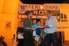 En una noche con algo menos de afluencia que en la jornada inaugural, quizás por la temperatura más fresca, el presidente de Aeciro, Juan Alberto Izquierdo, junto a la delegada de Fomento, Encarnación Niño Rico, el representante del jurado, Manuel Pérez Alcalá, del ciclo de Cocina del IES Arroyo Hondo, y el teniente de alcalde delegado de Participación Ciudadana, Antonio Franco, en representación del alcalde de Rota, fueron los encargados de entregar los premios de esta decimo sexta edición de la Feria de la Tapa.