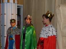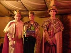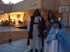 Los asistentes, como siempre, se mostraron encantados de ver el trabajo de estos chavales de 3º a 6º de Primaria que se han llevado semanas ensayando sus textos y diálogos; una labor que se ha completado con la implicación de profesores y padres que también han dedicado horas extras para preparar la puesta en escena en la que no han faltado detalles. Arena, paja corchos, maderas y otros materiales han servido para lograr que el pórtico exterior del colegio se convierta en un pasaje propio de la Navidad. La Anunciación a María, con la que se inicia el recorrido, la llegada de María y José buscando una posada que no encuentran, el ambiente de carpinteros, panaderas, lavanderas y pastores, la amenaza del nacimiento de Jesús para el Rey Herodes, la aparición de los Reyes Magos guiados por una estrella para adorar al Mesías y finalmente, el pesebre en el que María dio a luz a su hijo, fueron algunas de las escenas que el público pudo ver en este belén viviente en el que los actores pusieron todo su empreño.
