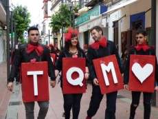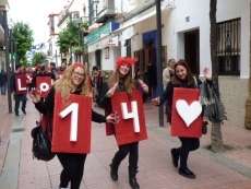 En esta ocasión, desde la plaza de San Roque hasta la plaza de España, lo han intentado, han ido en grupos, han formado palabras como "Amor", "Besos", "Pasión", "TQM", "I love you", "Te amo"  y han llamado la atención de los pocos peatones que a esas horas paseaban por la localidad y a los que se les ha obsequiado también con piruletas en forman de corazón, dado que lo que hoy celebraban era el próximo día de San Valentín.