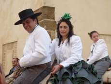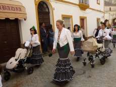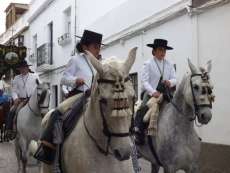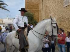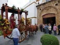 Aunque ayer había algunos partes meteorológicos que amenazaban con lluvia, la realidad es que la Hermandad de San Isidro no ha tenido problemas para realizar su peregrinación hasta los pinos, es más, le está acompañando unas buenas temperaturas y un cielo despejado, al menos en la primera parte de lo que va de día. Eso ha propiciado que muchos roteños se hayan animado a pasarse por los pinos para acompañar al patrón de los agricultores que en su carreta, recorría varias calles y avenidas de la localidad en un cortejo formado por caballistas, jinetes y amazonas, un buen grupo de hermanos de todas las edades luciendo el típico traje de la hermandad, representantes de la junta de gobierno, la pregonera de este año Soraya Castellano, miembros de la Hermandad de Nuestra Señora del Pinar de Regla de Chipiona que es fiel a esta cita, el pitero Antonio Vázquez, y unas cinco carrozas de peñas de amigos que han dado ambiente a la comitiva que bien pasadas las once y media de la mañana, llegaba a los pinares. Una vez allí, en la zona frente al recinto ferial, San Isidro en su carreta ha presidido la tradicional Misa de Romeros. Una eucaristía que ha comenzado a las doce del mediodía, con bastante retraso según el programa oficial, provocado en parte por la tardanza también de la salida que se ha retrasado una hora esperando a las vacas que tiran de la carreta de San Isidro.