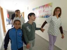 Esta mañana, el "Pili Varo" ha recibido la visita de los alumnos de 4º de ESO del colegio Salesianas que han compartido con los chicos del colegio de educación especial varias actividades. Lo primero que se ha hecho a su llegada ha sido dividirlos en grupos heterogéneos donde se han mezclado niños con y sin discapacidad. Luego, por turnos, han ido pasando por distintas aulas, sesiones y terapias para que los estudiantes que en este caso actuaban como visitantes, pudieran ver en primera persona cómo trabajan los chicos con diversidad funcional, cómo se les estimula, cómo se les ayuda a su mejor desarrollo y de esta forma, ser conscientes de las capacidades y habilidades de cada uno y de una realidad que a lo mejor, por circunstancias, les queda más alejada. Concretamente, los diferentes grupos han estado en el aula de logopedia, en el de fisioterapia, en el de psicomotricidad y en la sala multisensorial. En cada caso, han sido los monitores del "Pili Varo" los que han explicado a los estudiantes de las Salesianas la dinámica de trabajo en cada uno de ellos, haciendo ejercicios prácticos conjuntos en los que han participado los chicos mezclándose entre sí, sin distinción.