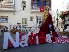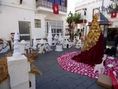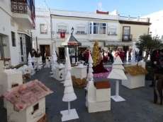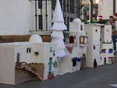 Hoy, 90 alumnos, de los ciclos medio y superior de Comercio y Marketing han puesto en práctica algunas de sus habilidades, en este caso, relacionadas con la Navidad, una de las fechas de mayor consumo del año. Para ello, han elegido la plaza de San Roque donde han decorado un rincón con artesanales casas blancas que emulan a los pueblos blancos de Cádiz, al lado de renos, trineos y un árbol de Navidad en cuyos bajos se podía ver un particular nacimiento.