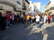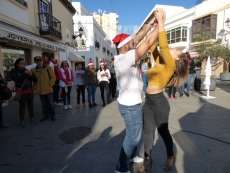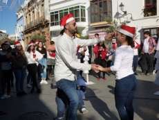 Animar las calles del centro para fomentar las compras navideñas o al menos, hacer el paseo más ameno, ha sido de nuevo el objetivo de los alumnos del Ciclo de Comercio y Marketing del IES Arroyo Hondo que esta mañana han vuelto a cambiar las clases por una salida en grupo hasta la plaza de San Roque, lugar elegido para llevar a cabo estas actividades de animación.