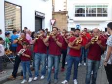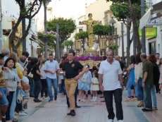 A las ocho y media de la tarde, como estaba previsto este año dos horas más tarde para favorecer mayor afluencia de ciudadanos, salía el único paso de un cortejo corto que se vio arropado sin embargo por una amplia representación de la Banda de Cornetas y Tambores de la Asociación Musical "Ruiz-Mateos" que, como cada año, colaboró con la Asociación Cruz de Mayor del Casco Antiguo que organiza desde hace más de tres décadas esta salida procesional.