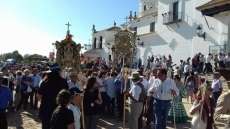 La carreta que porta el Simpecado de Rota se engalanó para la ocasión por la mañana y tomó rumbo por la tarde hacia la ermita acompañada por la comitiva compuesta por piteros, hermanos vestidos de corto, hermanas de flamenca, junta de gobierno, rocieros, devotos en general y autoridades, entre las que se encontraba el alcalde roteño, Javier Ruiz Arana. Una vez recibida la bendición, la carreta volvía a la Casa Hermandad para seguir con las jornadas de convivencia que se aderezan con cantes y bailes.