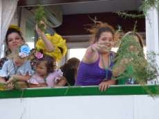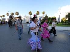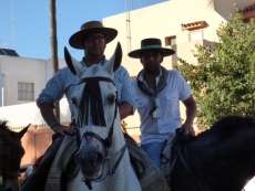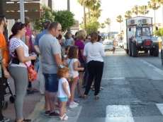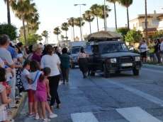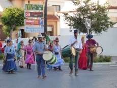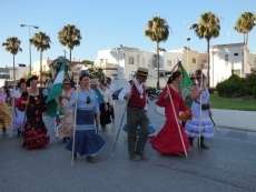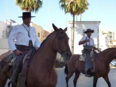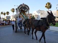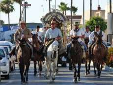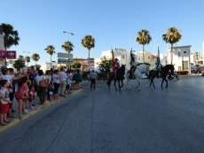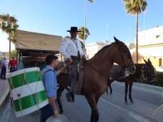 Cortejo corto, compuesto por una decena de caballos y algunas mujeres de flamenca además de la presidencia, acompañaron a la carreta del Simpecado por las calles de Rota. Una representación mucho más limitada que a la ida cuando partieron 300 romeros para hacer el camino y es que como todos los años, el trabajo y otras obligaciones no permite a todos los rocieros completar la peregrinación hasta la vuelta.