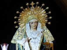 Por primera vez en su historia Soledad de María Santísima, titular de la Hermandad del Santo Entierro de Cristo, presidió un rosario vespertino que en la noche de ayer se celebró enmarcado dentro de los actos por el 400 aniversario fundacional de esta cofradía del Viernes Santo.