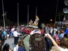 Al margen de este detalle que tuvo parada a la comitiva varios minutos, la virgen lució espléndida por el paseo marítimo por donde se fueron rezando los cinco misterios del rosario. Especialmente numeroso era el grupo de fieles que procesionaba detrás de la Soledad rezando y algunos tramos como la salida o la llegada a la plaza Jesús Nazareno, donde se concentró buena cantidad de ciudadanos que no pararon de inmortalizar con sus móviles esta salida nada habitual en esta dolorosa. De hecho, era la primera vez que presidía un rosario vespertino y que lucía fuera de su paso del Viernes Santo al pie de la cruz.