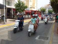 Las vespas de esta V Vesparoth llegaron a la plaza de la Costilla pasada la una y media del mediodía sorprendiendo a muchos turistas incluso roteños que no sabían nada de esta cita, pero que aprovecharon para ver modelos de motos muy antiguos, otros más modernos, e incluso fotografiarse sobre alguna de ellos.