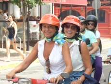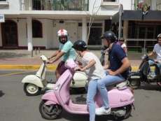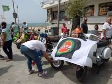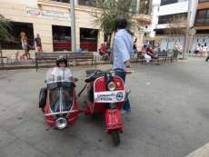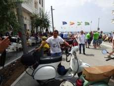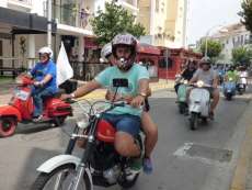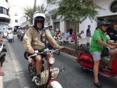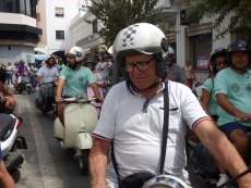 Tras una ruta que comenzó temprano, a las 9 de la mañana con la llegada de inscritos, que finalmente ascendieron a 150, los "vesperos" fueron haciendo paradas en algunos bares de la localidad con los que tenían concertados previamente algún aperitivo. Desde allí se fueron a Costa Ballena porque este año, ente los participantes, había uno muy especial para los aficionados a esta clásica moto. Estaba Antonio Veciana que junto a Santiago Guillén cometieron la gesta de realizar la vuelta a mundo en vespa en 79 días en el año 1962. Antonio estuvo en Rota con su mujer Carmen Galindo disfrutando de esta concentración de vespas y lambrettas y siendo, sin duda, para los inscritos, todo un honor poder compartir con él batallas y experiencias.