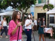 Un cortejo reducido en el que se han podido ver principalmente, mujeres y jóvenes, unas portando varas y otras vestidas de mantilla dando especial realce a una comitiva que abría paso a la Merced. Vestida con su saya blanca de tisú de plata y capa mercedaria, y luciendo la corona de plata de Cuba de 1872, donada por la que en aquella época fue su camarera, Amelia Betancourt de Izquierdo, una mujer cubana casada con un roteño, la virgen ha cumplido con su cita habitual precedida del cuerpo de acólitos y marchando a los acordes de la Banda de Música de la Hermandad de Nuestro Padre Jesús Nazareno. Una banda que siempre la ha acompañado en esta cita desde que en 2012 saliera a la calle por primera vez, y que en esta ocasión, ha estrenado una marcha dedicada exclusivamente a ella, creada por el músico local Juan Miguel Villalba.