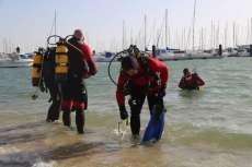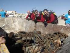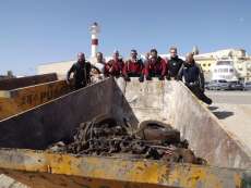En total, entre los buceadores del Club Urta y los voluntarios en tierra, donde aparte de Ecologistas colaboró la delegación de Medio Ambiente del Ayuntamiento de Rota facilitando contenedores para depositar la basura extraída, 42 voluntarios participaron en un gesto de concienciación medioambiental apostando por colaborar en esta III Gran Limpieza Nacional de Fondos Marinos.