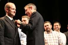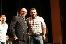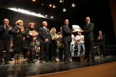 La delegada de Cultura, Esther García, y el teniente de alcalde Antonio Franco, acompañaron a la banda en el acto de entrega de estos galardones, que recibieron por un lado, Antonio Pino y Carlos Vargas, por su trayectoria de 25 años como miembros de la banda; y por otro lado, Inmanol y Óscar Fontela, técnicos de iluminación y sonido del auditorio municipal, por la colaboración y ayuda que prestan a esta banda dentro y fuera del teatro.