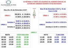 Para los días festivos de Navidad y Año Nuevo, es decir el 25 de diciembre y el 1 de enero, la Línea 1 estará operativa de 12.30 a 15.30 horas y de 17.30 a 20.30 horas; y la Línea 2, en el autobús 1 de 12.15 a 20.15 horas; y en el autobús 2, de 12.45 a 20.45 horas.