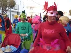 Y es que aunque los colegios se llevan el protagonismo, también hay aficionados a la fiesta que se reúnen en torno al último día de Carnaval para lucir tipo. Este año, ha habido algunos muy trabajados. Desde la veterana Regla Orcha, que este año iba de turista amamantando a sus hijos, a las piezas de Lego, abejas y apicultores, caníbales, indios, egipcios, sirenas, granjeros, una representación marina de Los Corrales de Rota hasta enamorados del programa televisivo First Dates, una flexible gimnasta, super héroes, señales de tráfico, zíngaras, y muchos más que han contribuido a dar color al último día de esta fiesta de Carnaval.