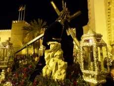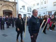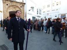 Algunos ciudadanos se acercaron a ver al Señor que fue trasladado en parihuela adornada con lirios morados, statice morado, flor de cera, limonium morado, cardo azul y rosas rojas. Jesús de la Salud portaba una cruz arbórea donada por Santiago Riezu Córdoba y lucía un antiguo cordón de hilo de plata restaurado por José Antonio Moreno Bernal.