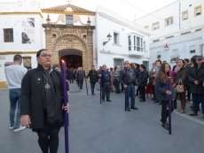 Dado que el viacrucis se rezaba en la parroquia de Nuestra Señora de la O a las 8 de la tarde, la imagen de Jesús fue trasladada desde su capilla de la Caridad hasta la iglesia mayor acompañada de una representación de las diferentes juntas de gobierno de las hermandades de la villa recorriendo algunas calles del casco histórico. A las siete de la tarde partía el cortejo que abría la cruz y seguían los hermanos mayores con cirio.