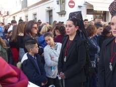 Unos 200 hermanos han formado el cortejo, entre hermanos de cirio, varas y mujeres de mantilla, antecediendo un paso que ha vuelto a estar guiado por el veterano capataz Pedro Merino que lleva 26 años al frente de la cuadrilla de costaleros que se convierten en los pies de Nuestra Señora de los Dolores y el Cristo de la Caridad. También la banda de música de Nuestro Padre Jesús Nazareno, que cumple 27 años con esta hermandad, aporta su gran granito de arena con un repertorio de marchas procesionales que suele gustar bastante en la calle con piezas muy conocidas y reconocidas por el público que espera impaciente algunas de ellas para ver el buen hacer de una cuadrilla de costaleros que se emplea a fondo durante cinco horas de procesión. .