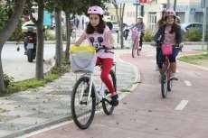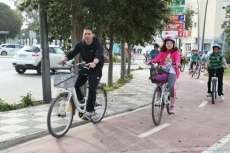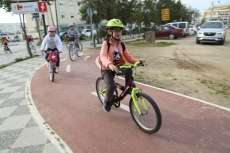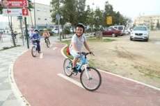 Esta mañana de miércoles está siendo diferente para un buen grupo de alumnos del colegio público Azorín, que han cambiado las aulas por un paseo en bicicleta por el carril bici de la localidad.