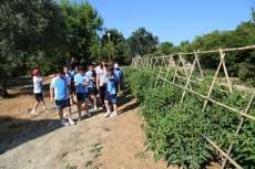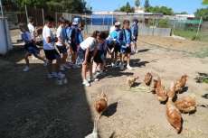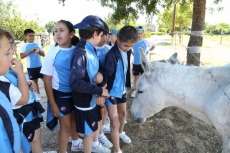 A través de esta visita guiada, que se adapta a las edades de los participantes, los alumnos conocen directamente la granja de animales donde les enseñan los trabajos que se realizan habitualmente; para continuar visitando el huerto donde pueden ver todo tipo de cultivos que plantaban los antiguos mayetos (calabazas, lechugas, cebollinos, tomates, pimientos, coles, habas, etc.), así como la forma en la que se cultiva cada planta, o cómo se deben orientar.