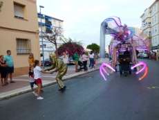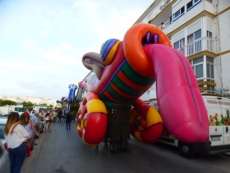 Las buenas temperaturas han acompañado, aunque con cierta humedad, lo que ha hecho que los roteños se hayan tirado a la calle disfrutando de una animación en esta cabalgata muy similar al pasacalles del jueves. Grandes animales han llenado de color y música el cortejo sumándose a ellos unos psicodélicos insectos sonorizados e iluminados que han lucido mucho más cuando ha caído la tarde. La cara de sorpresa y admiración de los niños es de las mejores estampas que deja esta cabalgata que se ha disuelto en la plaza de Andalucía casi tres horas después de su salida.