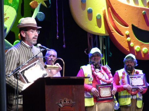 Previo al XXXII Pregón de Carnaval que este año ha pronunciado el cómico humorista sevillano Manu Sánchez, en el auditorio municipal "Alcalde Felipe Benítez" se procedía a la entrega de varios homenajes a carnavaleros y entidades que durante años han demostrado su amor a la fiesta de Don Carnal formando parte de ella de forma activa.