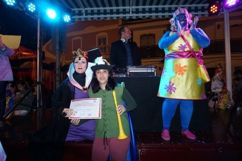 Fueron la delegada de Fiestas, Laura Almisas, y la delegada de Educación, Esther García, las que entregaron los diplomas y premios a los ganadores de este concurso 2019 que recayeron en la modalidad de mejor disfraz individual para el flautista de Hamelín; el mejor disfraz de pareja fue para la pareja disfrazada de Franco y Carmen Polo; y el mejor disfraz de grupo para los que lucían el tipo "Dando la nota". De los colegios, Maestro Eduardo Lobillo se llevó la mención al mejor ambiente, el AMPA del colegio Pedro Antonio de Alarcón la mención a la mejor participación, el AMPA de Luis Ponce de León al disfraz más elaborado, y el AMPA de Azorín al disfraz más original. Por su participación en la cabalgata, recibieron diploma el AMPA del colegio San José de Calasanz, la Asociación de Discapacitados y "La Escuelita".