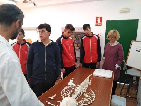 Esta propuesta se ofrece a estudiantes de 3º y 4º curso de Secundaria y Bachillerato, que se trasladan hasta el jardín botánico "Celestino Mutis" donde Osteología del Sur tiene su taller de trabajo, el mismo que los alumnos y la propia delegada de Educación, Esther García, han visitado.