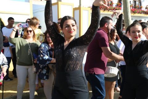 Tras esta coreografía conjunta, fue la cantante Rocío Ruiz la que tomó el testigo con el cante por sevillanas que animó a muchos de los presentes a marcarse un baile viviendo el Real uno de los momentos con mayor ambiente de la tarde.