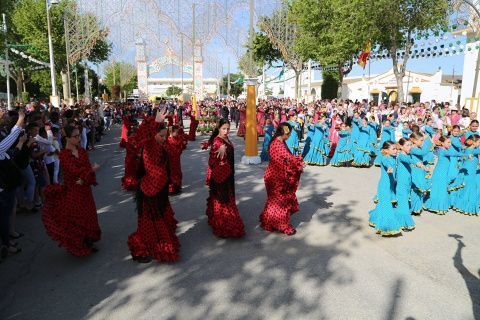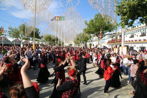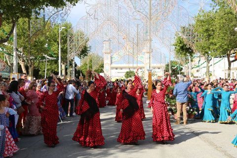 Un momento destacado de la jornada se vivió con cientos de personas en la calle principal del recinto ferial que se congregaron para bailar por un lado y para ser espectadores de esta novedad por otro. Como ya anunciara la delegación de Igualdad, este año se proponía a las cuatro academias de baile con las que cuenta Rota una coreografía común para bailarla a la vez y dar protagonismo a la presencia de la mujer. Fue un momento especial que vivieron especialmente las pequeñas bailaoras nerviosas porque todo saliera como habían ensayado. Con la canción de Dorantes, "Orobroy", consiguieron reunir en el Real a muchas personas que vieron la implicación de las bailaoras de las escuelas de Laura Pirri, Ofelia Márquez, Rocío Sánchez y "Puro flamenco" a quienes la delegada Esther García agradeció el esfuerzo que habían puesto a la hora de ensayar con sus alumnas este 'flashmob' que dio un color especial a la tarde. Con las representantes de las academias se tuvo un detalle entregándoles una calabaza muy flamenca, con lunares, a modo de recuerdo por su participación.