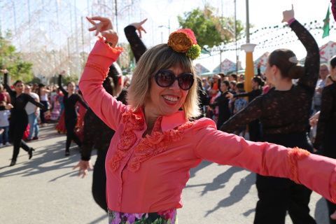 Las mujeres fueron parte protagonista en el día de ayer en la Feria de Primavera, no en vano, era una jornada dedicada a ellas y así se notó prácticamente desde principios del mediodía cuando muchas casetas reunían a grupos de mujeres para compartir un almuerzo de convivencia. A ello se sumaba la comida de la delegación de Igualdad, también dedicada a la mujer aunque con la participación de hombres, y el 'flashmob' que tuvo lugar sobre las seis de la tarde en pleno Real de la feria.
