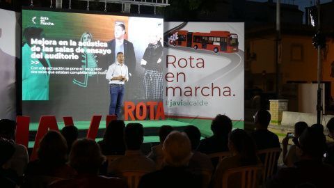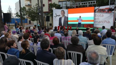 Javier Ruiz quiso ayer dirigirse a los más de 160 vecinos que se concentraron en la plaza de la delegación de Servicios Sociales para pedirles el voto abiertamente a un proyecto que pretende "que Rota siga en marcha". Su eslogan de campaña es una declaración de intenciones que viene avalada, como decía, por el trabajo que se ha hecho en estos cuatros años donde asegura que se han cimentado proyectos y se han aprobado medidas que están enfocadas a conseguir la mejor Rota para el futuro explotando su potencial. "Sería una pena que no pudiéramos terminar", decía el alcaldable insistiendo en la necesidad de movilizar a la ciudadanía para votar "porque cuando el pueblo se moviliza gana el progreso y gana el PSOE".