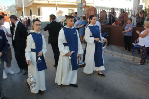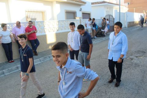 Muchos alumnos de este centro educativo, representantes del AMPA, de la Asociación "María Auxiliadora" y antiguos alumnos formaban un numeroso cortejo, ya que esta es una cita en la que toda la comunidad salesiana se involucra.
