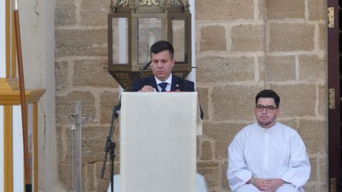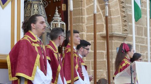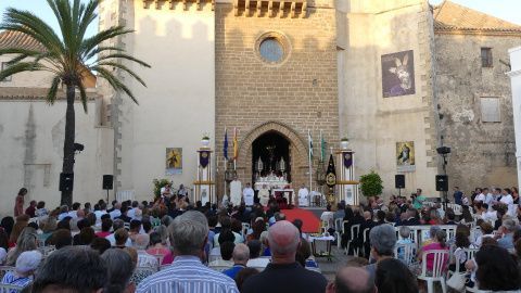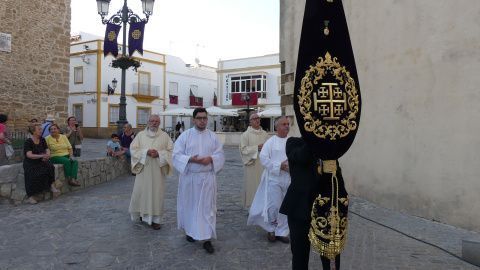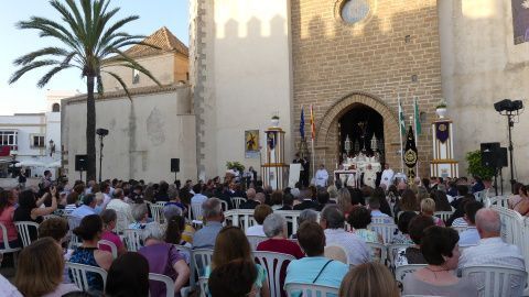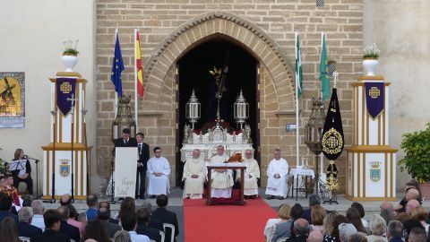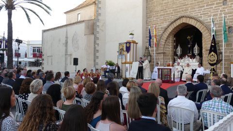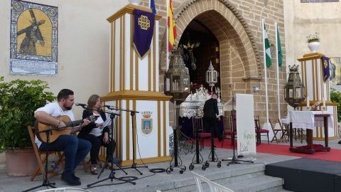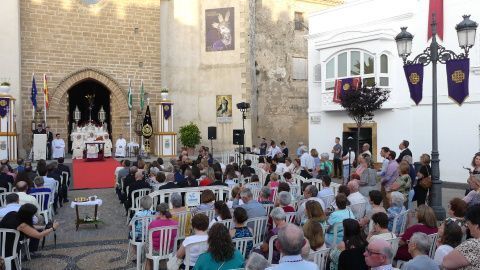A la altura de la puerta de la parroquia de Nuestra Señora de la O, donde la pasada Semana Santa ya se le pudo ver durante el pregón de pasión antes de iniciar la Madrugá, se posicionaba la imagen de Jesús Nazareno presidiendo el altar exterior desde el que el cura párroco de esta iglesia y director espiritual de la hermandad, José Arjona Gil, ha oficiado la eucaristía. Una misa que ha contado con la participación de Clara Pavón y José Manuel Pavón, que se han encargado de poner los acordes musicales que han sonado en plena plaza dando así más realce a un momento especial para la hermandad nazarena y para los devotos de Jesús.