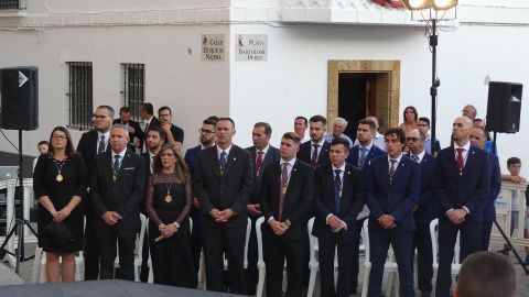Entre el público se ha podido ver a representantes de las diferentes hermandades de la localidad, a miembros de la Corporación municipal, a la Policía Local como hermano mayor honorario de la Hermandad del Nazareno, a otras autoridades civiles y militares y a roteños y fieles en general. También estaba una representación de la Hermandad del Silencio de Sevilla, la primera que se fundó con el Nazareno como titular, y madrina de los actos de la hermandad de Rota.